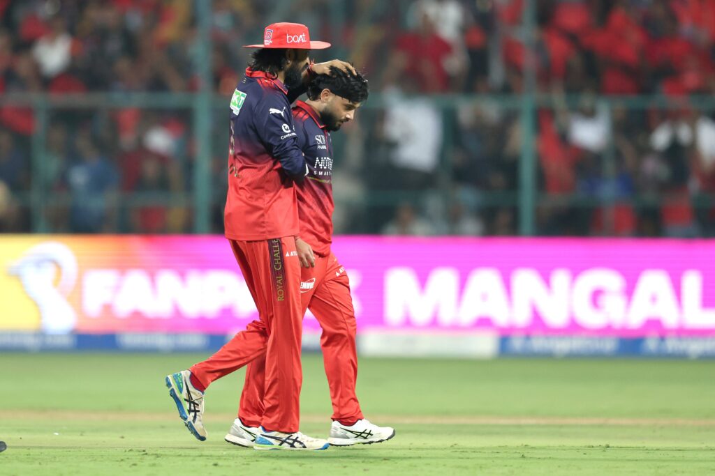 The bowling unit of Royal Challengers Bengaluru had a mixed outing, struggling to contain runs despite picking up a few wickets. Bhuvneshwar Kumar bowled economically and picked up an important wicket, while Josh Hazlewood and Suyash Sharma also contributed with one wicket each. However, expensive spells from bowlers like Krunal Pandya made it difficult to restrict Gujarat Titans, allowing them to post a big total.